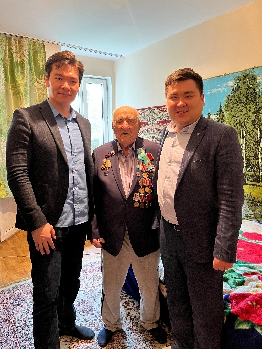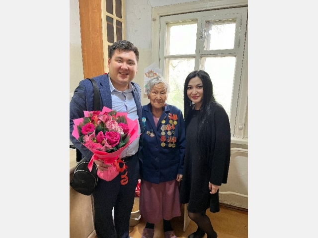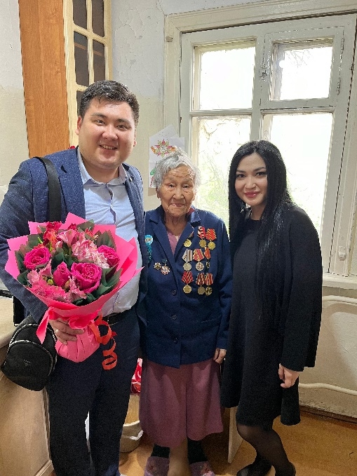 Ветераны Ишмухамедов Абдрахман Шарипович, 21.10.1924 г.р., Кудин Илья Григорьевич, 26.07.1927 г.р., Абдрахова Василя, 20.10.1927 г.р., Жетпысбаева Асьма Сейсембековна, 02.03.1928 г.р. были тронуты вниманием, рассказывали о своем боевом пути, поделились воспоминаниями.
